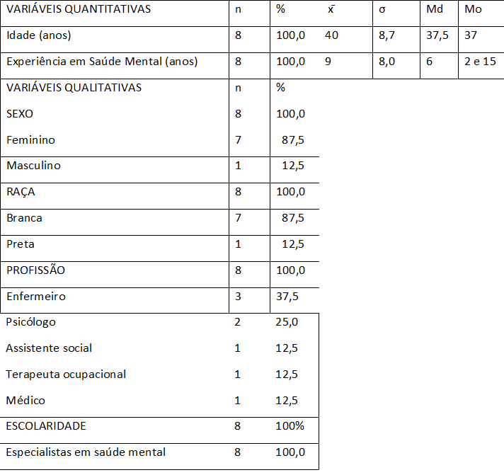 Tabela 1 Caracterização dos participantes do Grupo Focal realizado no CAPS do interior de São Paulo/Brasil (N= 8)