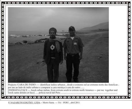 MS: Paulo, I am studying your work in my dissertation, and one thing I am also interested in, not only for the dissertation but also for our research group, is one of the tensions in your work, which is subverting this concept of racial mixing, and thinking of the mestizo as a fictional character in Brazil who was placed in the racial theories of the 19th century as a degenerate figure and then romanticised as a representative of this national symbol. Both places start from a concept of "race" as a construct of biology, from biology. In your work, this figure, the mestizo, is used to punctuate not only the erasures but also to extrapolate a notion of essentialised and fixed "racial identity". You create connections through similarities, as in the project Cara de Indio (Indigena Face; Figure 1), for example. When you talk about Mexico, you question borders, something I saw in your book, which makes me think of a strong relationship between your work and the writings of Chicana Gloria Anzaldúa, this relationship of ambivalence in inhabiting these in-between places, and this is what I wanted to understand: how does this mestizo consciousness feed your crossings? And considering the territory as a fundamental aspect of your work, to what extent do you believe it is possible to negotiate these encounters?