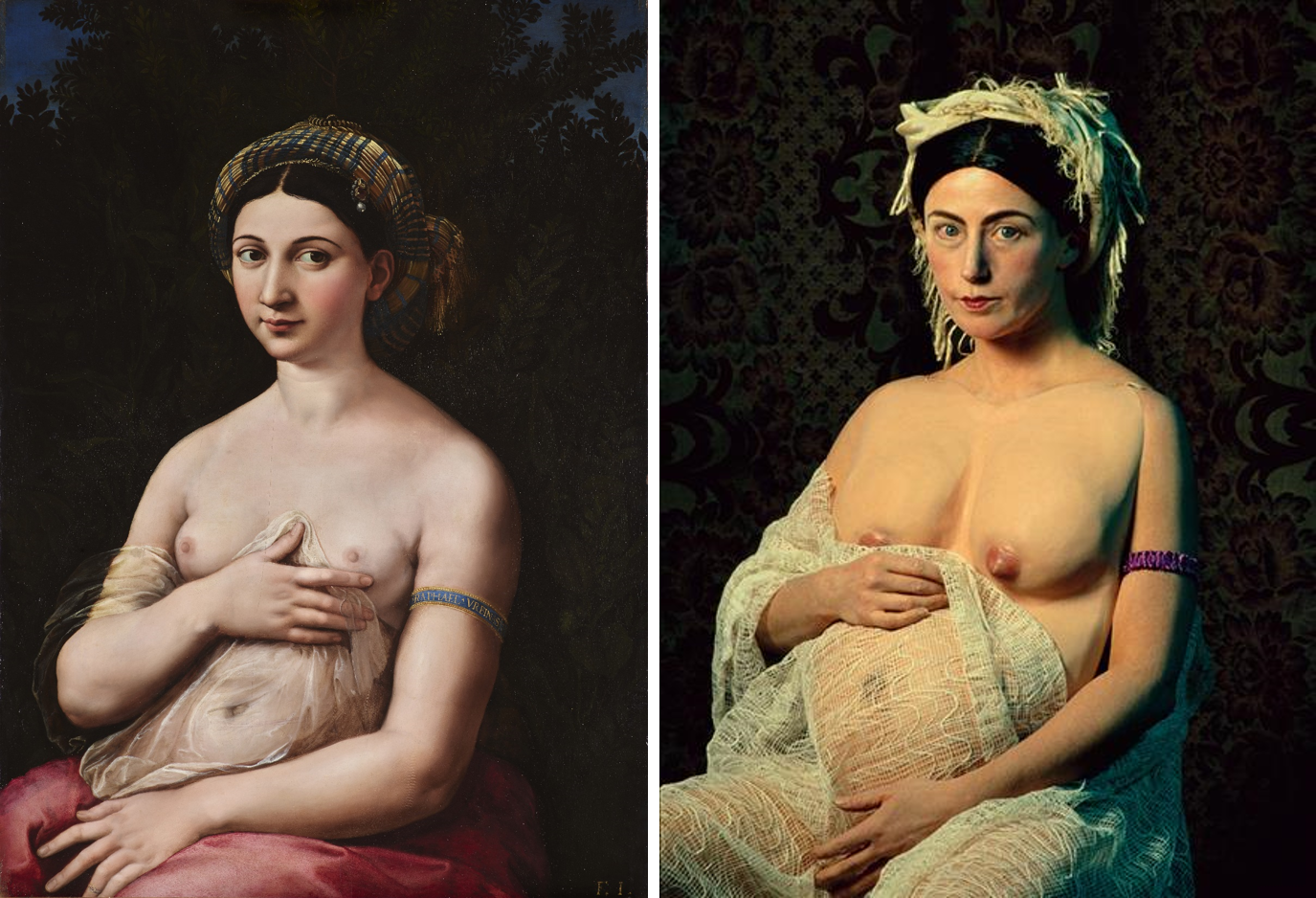 Credits. Raffaello Sanzio, 1519-1520 (https://commons.wikimedia.org/wiki/File:Raffaello_Sanzio_-_La_Fornarina_(ca._1519-1520).jpg)/Cindy Sherman, 1989 (https://www.wikiart.org/en/cindy-sherman/untitled-205-1989)
