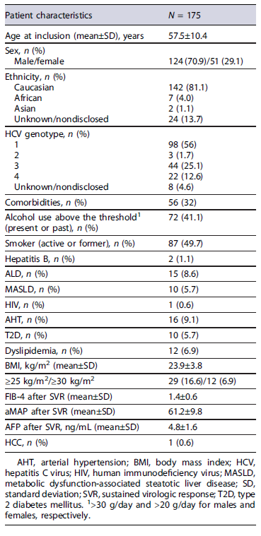Table 2. Summary of the characteristics of the cohort of patients without advanced fibrosis at baseline