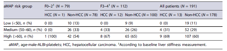 Table 6. Number of patients according to aMAP group, fibrosis stage, and HCC in the cohort with a minimum 24-month follow-up