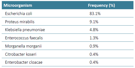 The demographic data identified in our study were consistent with the literature, showing higher prevalence of UTI in females and Escherichia coli as the most frequent pathogen.1