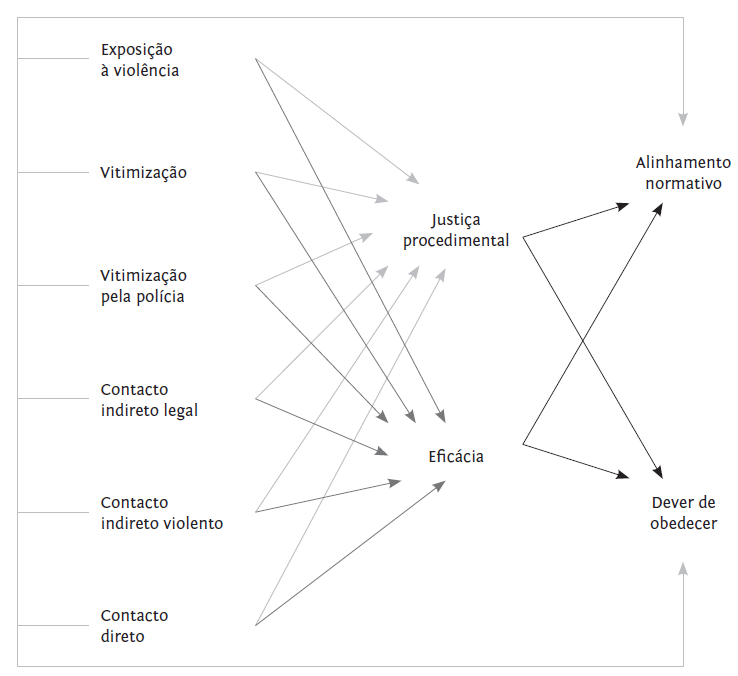 Recentemente, um amplo conjunto de estudos elaborados em países europeus, nas Américas e noutros continentes destaca que o contacto com autoridades do sistema de justiça criminal é uma experiência socializadora em relação ao universo legal. A maneira como as autoridades policiais exercem o seu poder nas abordagens aos jovens constitui momentos de aprendizagem que tanto podem fortalecer como minar as perceções de legitimidade e confiança (Justice e Meares, 2014; Tyler, Fagan e Geller, 2014; Slocum, Wiiley e Esbensen, 2015; Trinkner, Jackson e Tyler, 2018).
