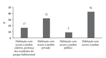 Relativamente a estes dados, poder-se-ia equacionar que a utilização dos espaços verdes está associada a utilizadores que não possuem uma habitação com acesso jardim. Ainda que não seja totalmente descartada, e que deverá ser alvo de aprofundamento no estudo em curso, o trabalho de Fonseca e colaboradores (Fonseca et al., 2010), sobre os comportamentos dos utilizadores dos espaços verdes de Bragança, conclui que ter jardim em casa não é fator que invalide a frequência de espaços verdes.