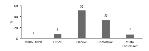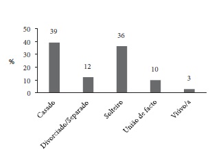 Quanto à caracterização da amostra atual, apresentam-se os valores mais significativos: prevalecem indivíduos do sexo feminino (68,7%), com uma idade média de 42 anos, com formação académica (84,7%) e ativos no mercado de trabalho (81,7%). É de referir o elevado grau de habilitações literárias dos inquiridos, o que pode indiciar um enviesamento dos resultados, sendo por isso necessário rigor e cuidado na interpretação dos mesmos. No que se refere à tipologia de habitação (fig. 2), 43% dos utilizadores reside em habitação sem acesso a jardim ou com acesso a jardim privado (32%). Relativamente ao estado civil dos inquiridos (fig. 3), duas situações surgem como mais significativas: 39 % dos inquiridos são casados e 36% são solteiros; enquanto a maioria dos respondentes considera que o rendimento do seu agregado é razoável (52%) ou confortável (33%) (fig. 4).