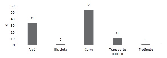 A frequência dos espaços verdes ocorre geralmente com a família (43,5%) ou sozinho (22,1%), o que de certa forma vai de encontro aos estados civis com maior expressividade (casado ou solteiro). A deslocação para os espaços é realizada, maioritariamente, de carro (54%), uma vez que, em número dominante, os inquiridos residem a mais de 30 minutos a pé dos espaços verdes (58,3%) (fig. 5), frequentando-os independentemente da época do ano (87,8%), sendo a maioria residente na cidade do Porto (59,6%). O facto da maioria dos inquiridos residir a mais de 30 minutos do espaço verde que frequenta mais regularmente pode revelar, por um lado, insatisfação com os espaços verdes mais próximos da sua residência ou, por outro, a não existência de nenhum próximo. Outra possível explicação para a frequência de espaços verdes distantes da residência é a procura por espaços de média/grande dimensão, localizados maioritariamente na área externa da cidade. Espaços verdes mais pequenos localizados na área de residência talvez sejam mais frequentados pela faixa idosa da população (Vidal et al., 2021). Perante estes resultados, torna-se evidente a necessidade de aprofundar esta questão, aumentando a amostra com grupos etários mais velhos, uma vez que é nestes grupos que se identifica a diferença percentual mais acentuada entre a população e a amostra.