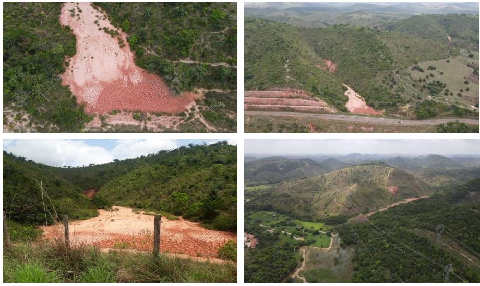 As Superfícies com colinas dissecadas, onduladas a fortemente onduladas são unidades localizadas na última porção de transição entre a Baixada Maranhense e os Planaltos Tabulares, apresenta, portanto, uma superfície que pode alcançar acima de 45% e rampas estreitas, fazendo com que ocorra o entalhamento de mananciais que vão escavando e rebaixando o terreno, elevando a declividade, em alguns casos, ocasionando um aumento no quantitativo de movimentos de massas. Suas planícies são restritas e é marcante na área o soterramento de várias nascentes, sobretudo pela falta de manejo das terras a montante (fig. 6).
