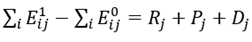 Assim, a variável emprego entre dois períodos “p” (0 e 1) pode ser demandada para mensurar os três efeitos ou variações, que são: efeito estrutural/proporcional (P j ), efeito regional/diferencial (R j ) e efeito total (D j ) (Viana et al., 2020, 2024).