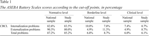 In order to evaluate the psychological adjustment of children, the Child Behavior Checklist for ages 1½-5 (CBCL 1½-5) of the ASEBA Battery for preschool (Achenbach et al., 2014) was used. This questionnaire was filled in by the referral caregivers of children aged 18 months to 5 years old, in accordance to the frequency by which these children expressed 100 different behaviours and skills, and thus, allowing for the identification of emotional and behavioural problems.