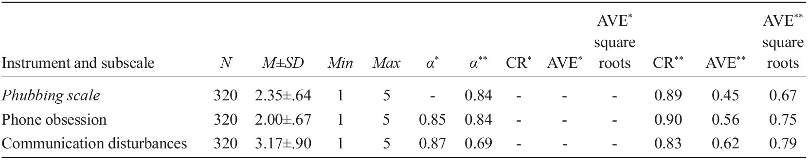 Table 2 Phubbing Scale descriptive statistics,average variance extracted, and reliability analysis