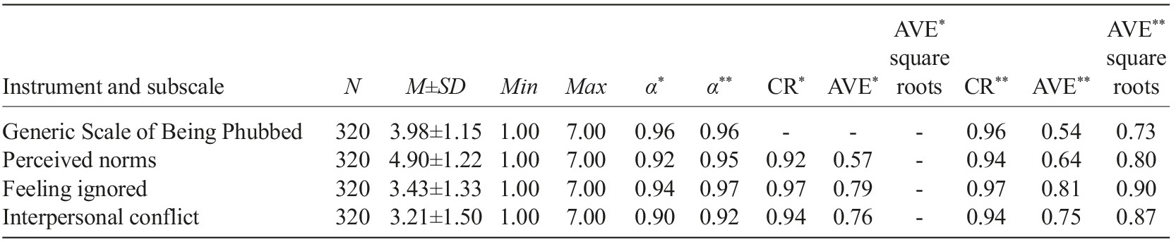 Table 4 Generic Scale of Being Phubbed descriptive statistics and reliability