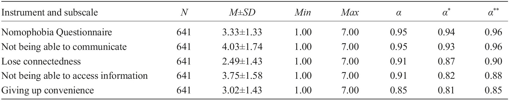 Table 5 Nomophobia Questionnaire descriptive statistics and reliability