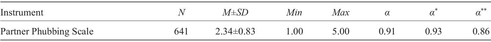 Descriptive and reliability analysis of the Partner Phubbing Scale