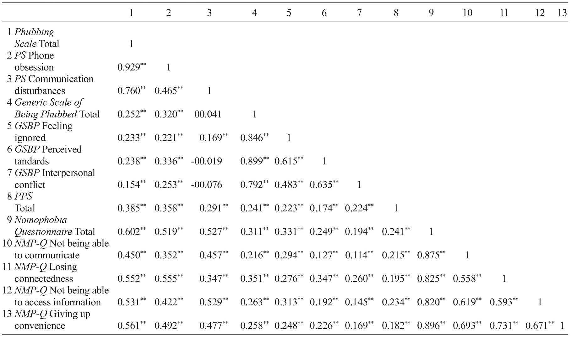 Converging Validity between Phubbing Scale and Generic Scale of Being Phubbed and Partner Phubbing Scale and Nomophobia Questionnaire