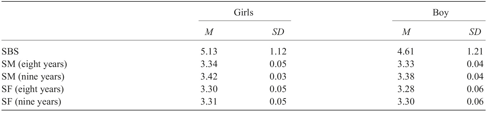 First, we present the descriptive results and associations between our variables. Like in previous studies (see Fernandes et al., 2019; van IJzendoorn & Bakermans-Kranenburg, 2010) sex differences were found in this sample [F(1,69)=3.07, p<0.05] for Secure Base Script (SBS) favoring girls (see Table 1).