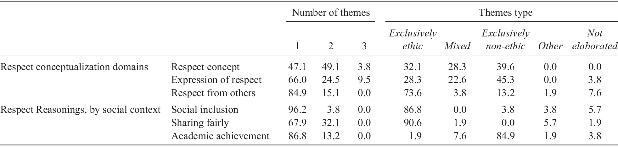 Table 1 Percentage of children by number and type of themes used to describe respect, organized by domains