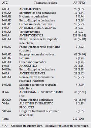 Table 3 Therapeutic classes of psychotropic drugs used by patients attended at CAPS Valter Correia, according to ATC classification