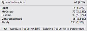 In regard to drug interactions,33, 34, 35 3.0% mild, 54.1% moderate, 29.3% severe and 13.5% contraindicated (Table 6). Those results demonstrate the need to evaluate possible interventions, since drug interactions may, among other things, increase undesired medications effects, lead to ineffective therapy and endanger the life of patient.36, 37, 38, 39