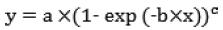 O teor em N das plantas de couve entre a primeira e a segunda amostragem de plantas foi calculado pelo ajuste da equação Chapman, com 3 parâmetros, aos teores em N das plantas de couve nos respectivos sistemas de fertilização pela Eq. [7]. Nesta equação, x corresponde ao tempo (em dias, a partir do dia de plantação das couves) e y é o N captado pelas plantas de couve (em kg/ha). Os parâmetros a, b e c e o grau de ajuste (r2) foram todos automaticamente previstos usando o SigmaPlot 8.0.