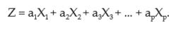 A utilização da ADC permite determinar funções das variáveis X = (X1, X2, ...,Xp), que separam g grupos tanto quanto possível, usando Z uma combinação linear das variáveis originais, e o valor médio de Z muda de um grupo para outro e assim separa os grupos. A abordagem é construir combinações lineares das variaveis Xi, em que os indices a = (a1, a2, ...,ap)possam maximizar a razão F para análise de variância de um fator (Jonhson e Wichern, 2007; Hair et al., 2009). A combinação linear das variáveis é dada por: