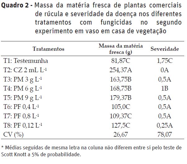da doença no segundo experimento foi baixa em todos os tratamentos (Quadro 2), provavelmente