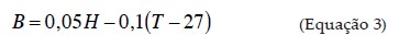 em que: B = índice de Angström; H = umidade relativa do ar (%). T = temperatura do ar (°C).