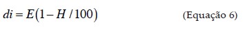 em que: E = pressão máxima de vapor d'água em milibares; H = umidade relativa do ar em porcentagem.