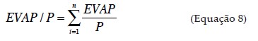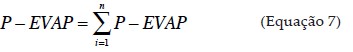 em que: P = precipitação total diária (mm); Evap = evaporação potencial diária (mm); n = número de dias com chuva <15 mm.
