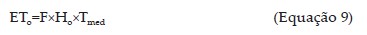 em que: F = fator de correção do modelo; Ho = radiação extraterrestre; Tmed = temperatura média diária.