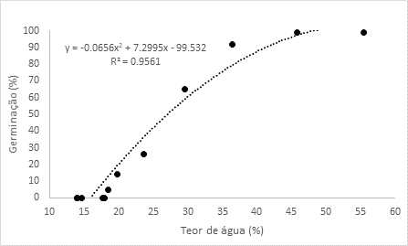 Baseada na avaliação do teor de água das sementes e a respectiva percentagem de germinação alcançada foram determinados: o teor de água letal, quando todas as sementes perderam a germinabilidade; o teor de água crítico, quando a germinabilidade inicial foi reduzida em 50% e o teor de água de segurança, quando não houve uma perda de germinabilidade significativa pela redução do teor de água das sementes (Sacandé et al., 2004).