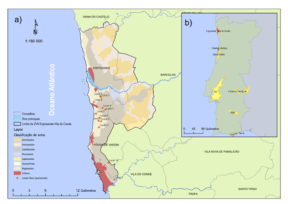 Com uma extensão de 205,72 km2 e abrangendo quatro municípios, Esposende [46%], Barcelos [34%], Póvoa de Varzim [16%] e Vila do Conde [3%], a ZVN de Esposende-Vila do Conde, viu definida a sua atual configuração geográfica na Portaria nº 1433/2006, de 27 de dezembro, porém, a área de monitorização quinzenal de pontos fixos está contida na delimitação da antiga Zona Vulnerável Nº1 - Aquífero livre entre Esposende e Vila do Conde definida na Portaria nº 1037/1997, de 1 de outubro (Figura 1).