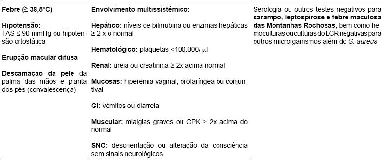 Tabela 1 - Definição de Síndrome de Choque Tóxico baseado nos critérios do CDC (1997).