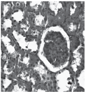 Amikacin has become an antibiotic used especially for the early treatment of bacterial Gram-negative infections in hospitals, since bacterial resistance to gentamicin and tobramycin has become a significant problem. Adverse effects are ototoxicity and nephrotoxicity (5). Thus, the purpose of the present article is to investigate morpho-histological kidney alterations due to chronic treatment with amikacin, by means of PAS staining.