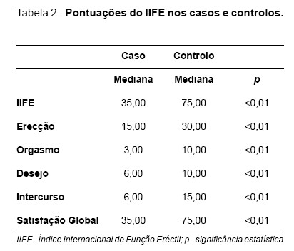 Na população em geral, o principal factor preditivo para a presença de disfunção sexual é a idade (12). Assim, era de esperar que a idade fosse também um factor preditivo do IIFE nesta amostra.
