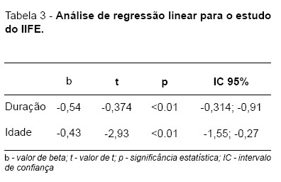 A duração da doença correlacionou-se negativamente com o IIFE (rho=-0,33;p<0,05).