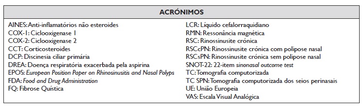 Estudos randomizados com pequena amostragem e de curta duração demonstraram que os agentes biológicos aprovados para o tratamento de asma alérgica refratária, omalizumab (anti‑IgE), mepolizumab (anti‑IL‑5), benralizumab (anti‑IL‑5Rα) e dupilumab (anti‑IL‑4 e anti‑IL‑13) reduzem de forma significativa a sintomatologia nasal e o tamanho dos pólipos46,47,48.