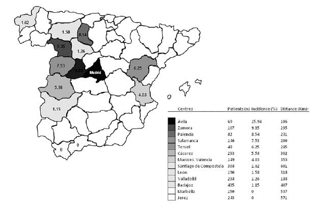 This is relevant, due to the fact that the incidence of these facilities was greater than that observed in our study21-23. However, the inclusion of any Madrid unit would have not represented the rest of HD units from this community.