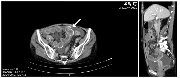 Due to an exuberant systemic inflammatory response with persistente fever and elevated inflammatory markers, severe protein-calorie malnutrition leading to total parenteral nutrition, and imaging findings, a diagnosis of EPS was assumed and treatment with tamoxifen (10 mg, twice a day) was started.