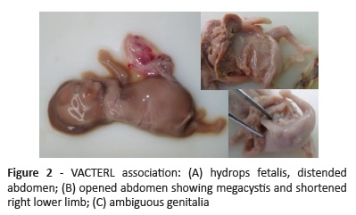 In the present two cases, anatomopathological examination was important to confirm US anomaly findings and detect other malformations enabling the final diagnosis of VACTERL.