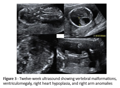 On the other hand, in Case 2 the first trimester ultrasound allowed to identify three typical features of the condition: cardiac anomaly and vertebral and limb defects.