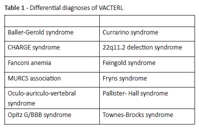 Exclusion of syndromes and other associations potentially confused with VACTERL should be performed within a multidisciplinary approach including a pathologist experienced in fetal pathology and a clinical geneticist (Table 1).1,4