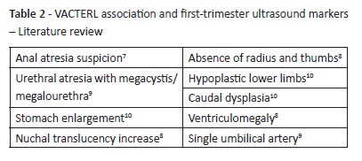 Embora estejam descritos poucos casos na literatura, a associação do espetro VATER/VACTERL pode ser precocemente detetada na ecografia do primeiro trimestre de gravidez.