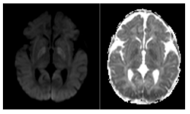 After weaning from sedation and analgesia, she maintained an altered mental status with spontaneous eye opening but no fixation or gaze following, poorly reactive isochoric pupils, and symmetrical but small amplitude mobilization of the four limbs. Transfontanellar ultrasound showed diffuse cerebral edema, and brain magnetic resonance imaging revealed severe hypoxic-ischemic encephalopathy consistent with the clinical findings (Figure 2). The electroencephalogram showed diffuse slowing of brain activity without epileptic activity.