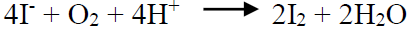 Then, the iodide ion was oxidized by molecular O2 dissolved in the H2SO4 solution, giving an equivalent of iodine that, in turn, formed 2 new moles of I- 3, through the reaction shown in equation 11. Then, I- 3exhibited a yellow color. The overall result of the electrochemical reactions (equations 10, 11 and 12) is expressed by equation 13 55.