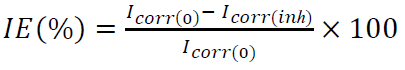 where Δm (mg) is the weight loss, S (cm2) is the area, t (h) is the immersion period, and W0 (mg/cm-2/h-1) and W (mg/cm-2/Vh-1) are the MS corrosion rates, without and with inhibitors, respectively.
