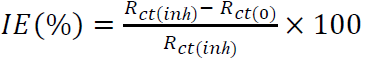 where Rct(0) and Rct(inh) are the charge transfer resistance without and with inhibitors, respectively.