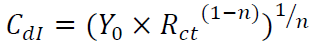where Y0 is the constant, j is the imaginary number (j2 = -1), ω is the angular frequency and n is the coefficient. Cdl can be calculated using the following equation 42: