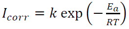 where k is the Arrhenius pre exponential factor and R is the gas constant. According to the data in Table 4, the plots of ln(Icorr) versus 1/T (Fig. 9) have almost straight lines, and all the r values are close to 1.