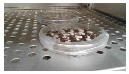Figure 1 Insertion of petri dishes sealed with parafilm into the incubator at light and room temperature.