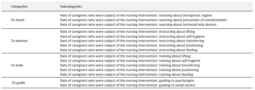 Teaching represents an important area of nursing intervention, since it helps in the acquisition and modification of clients’ behaviors. In the Andrade (2009, p. 68-69) study it was stated that the activities developed by nurses with the caregivers consisted of "(...) information, counseling, support, training of technical skills to the provide care (...)."